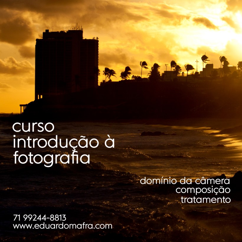 Saudações, galera! Passando aqui para trazer uma novidade para o pessoal de Salvador. Estou abrindo a sétima edição do curso de introdução à fotografia. Serão 16 horas totais de aula e desta vez o curso será realizado próximo à estação do metrô Brotas num ambiente super-bacana, equipado e climatizado, a Brooklyn Pub Criativo, no Bonocô Center. Abordarei o domínio técnico da câmera para entender o que é ISO, diafragma e obturador e demais aspectos técnicos das câmeras digitais e da fotografia digital como um todo, assim como também iluminação, regras de composição, tratamento em software de edição e claro, muita prática! A turma será limitada a sete alunos para um maior aprendizado e maior imersão, aqui a gente só trabalha assim! As inscrições já estão abertas e a as datas serão marcadas com o fechamento da turma, com previsão de realização para este primeiro semestre. Há entrega de certificado e para inscrever-se basta entrar em contato comigo pelo WhatsApp (71 99244-8813), pelo chat do Instagram (@mafraeduardo) por e-mail: eduardosmafra@gmail.com. Nos vemos lá!
